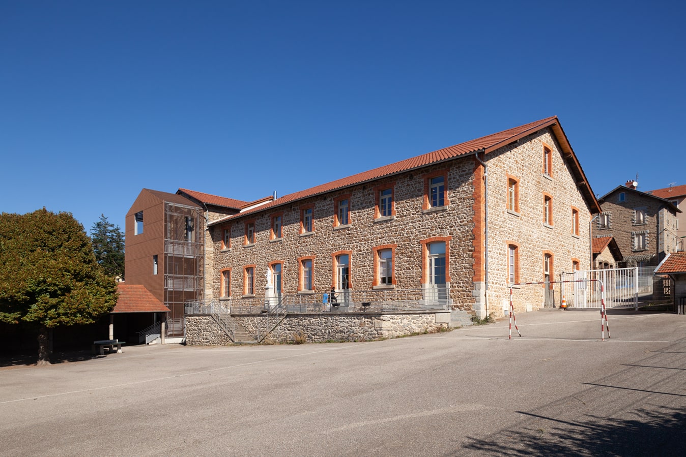 Fin de travaux à école privée de l’OGEC à Saint-Martin-en-Haut : ajout d’une cage d’escalier, restructuration de certains locaux, …