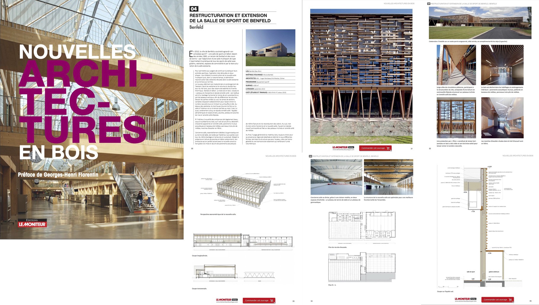 Les éditions du Moniteur ont retenu l'extension-restructuration de la salle des sports de Benfeld dans leur ouvrage consacré aux architectures en structure bois.