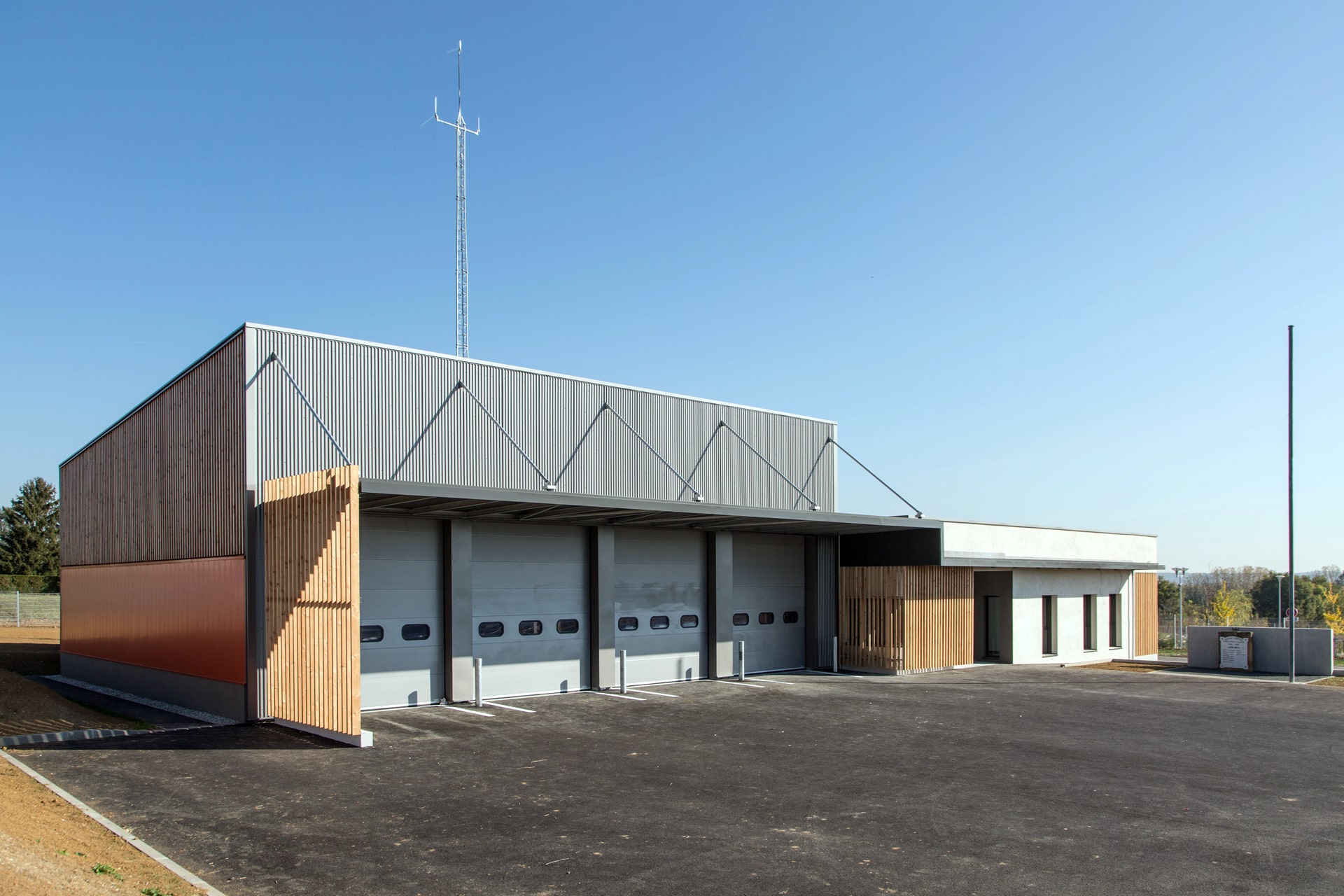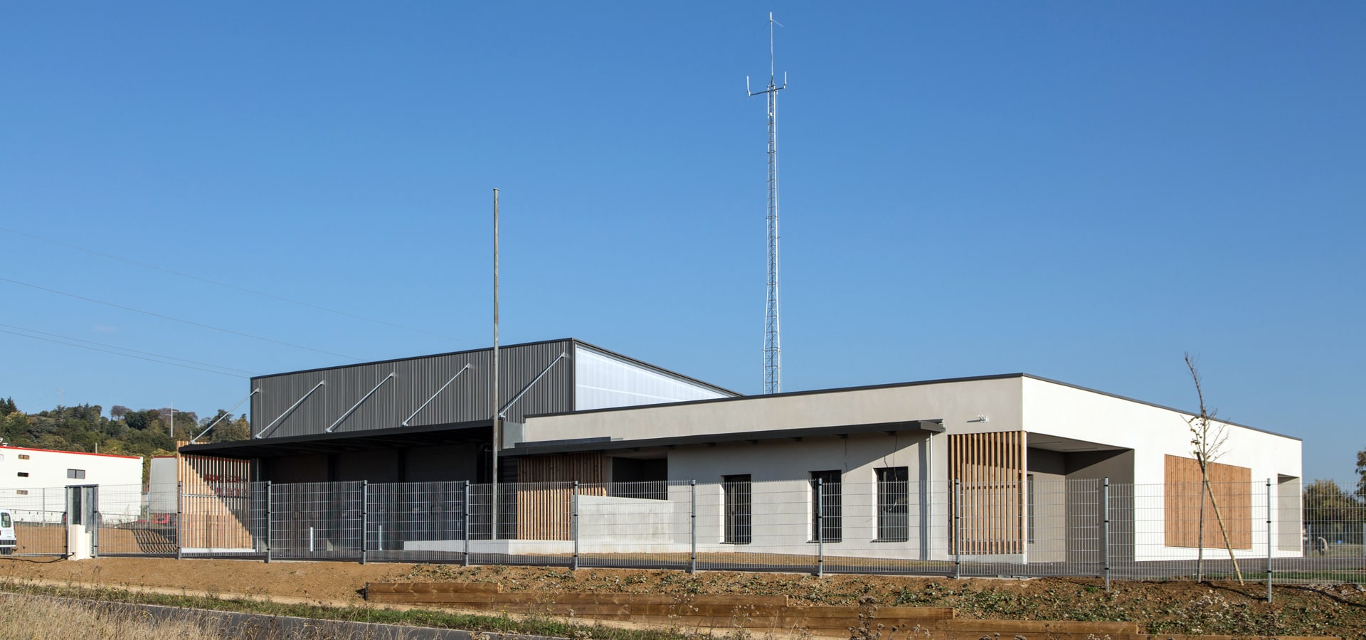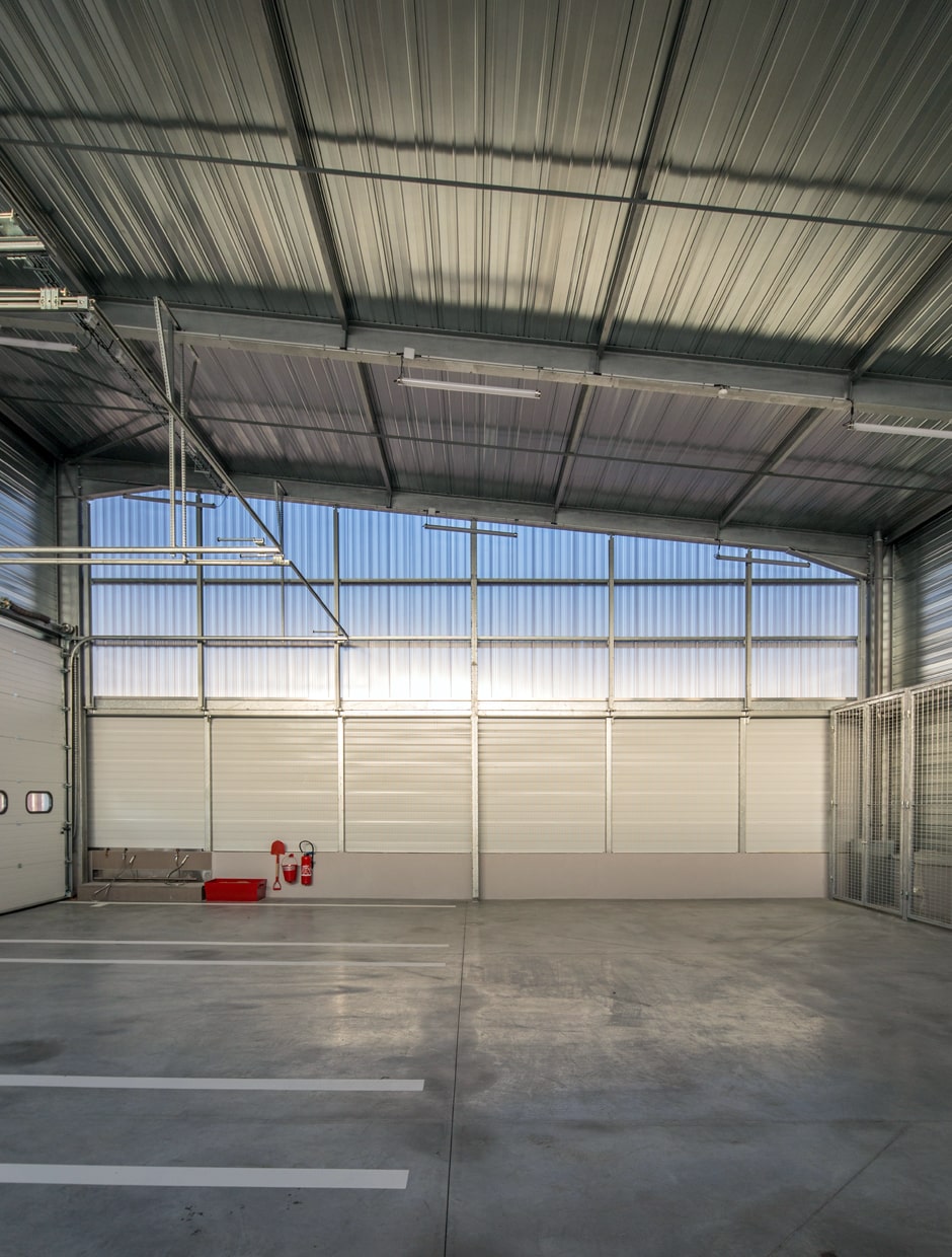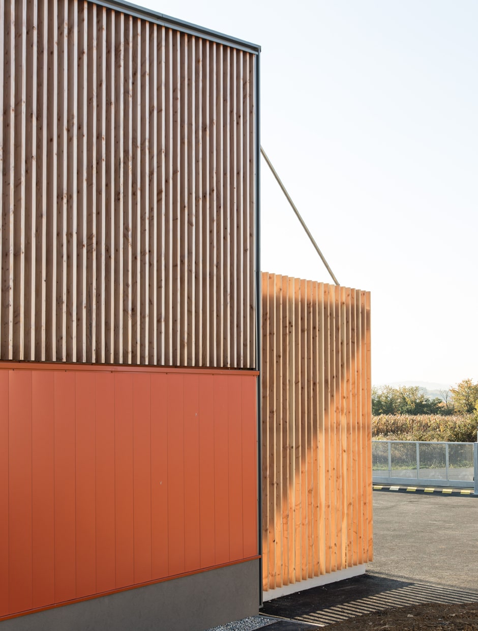 Le projet se développe à partir de l'implantation du hall engins, volume prédominant du projet.