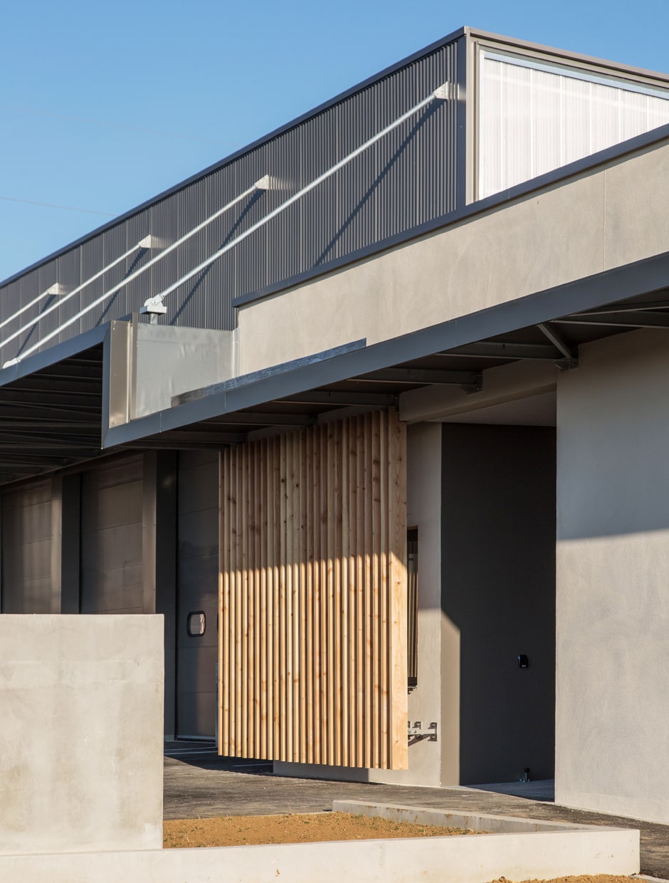 Au sud un large auvent permet de fédérer les deux volumes constituant le projet.