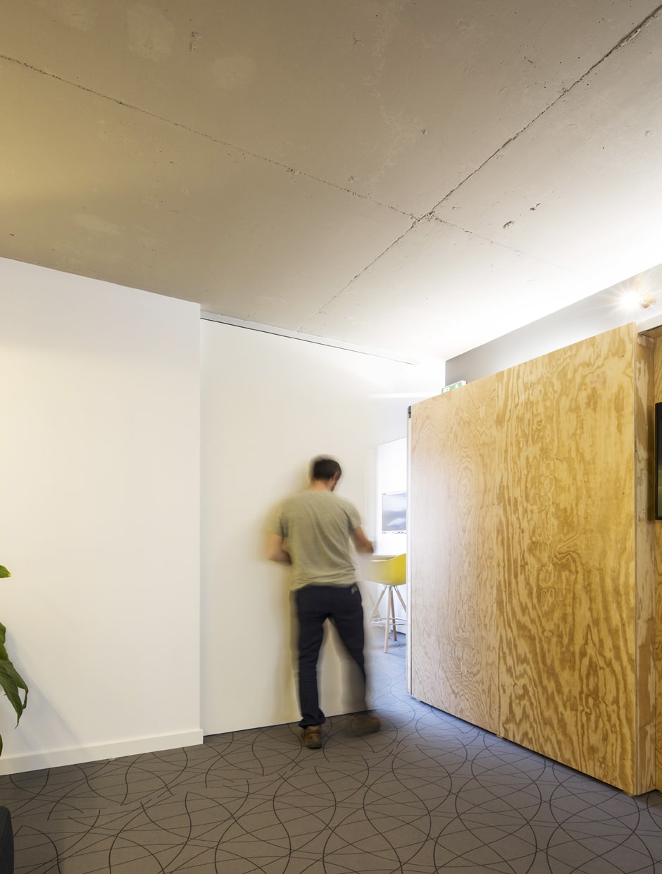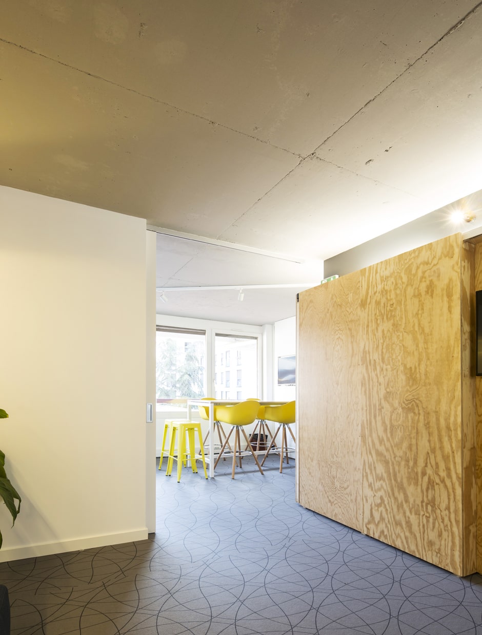 • la salle "blanche" de travail, modulable 1-2-3; travail / détente / réunions