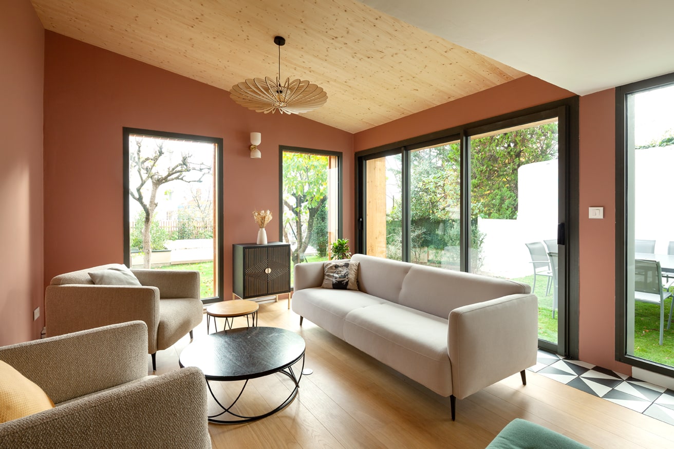 L’extension s’ouvre coté sud, et est une prolongement de l’extérieur vers l’intérieur.