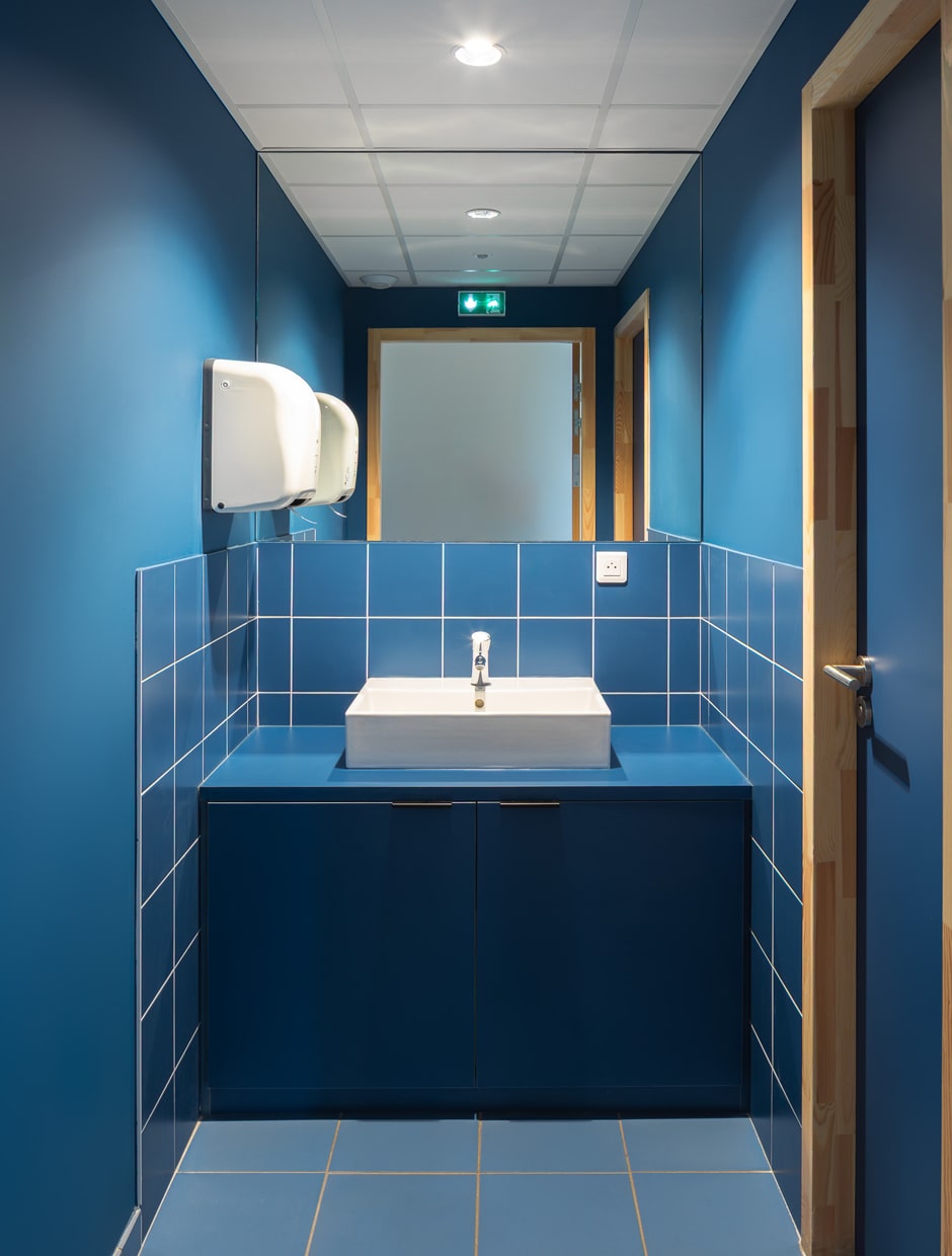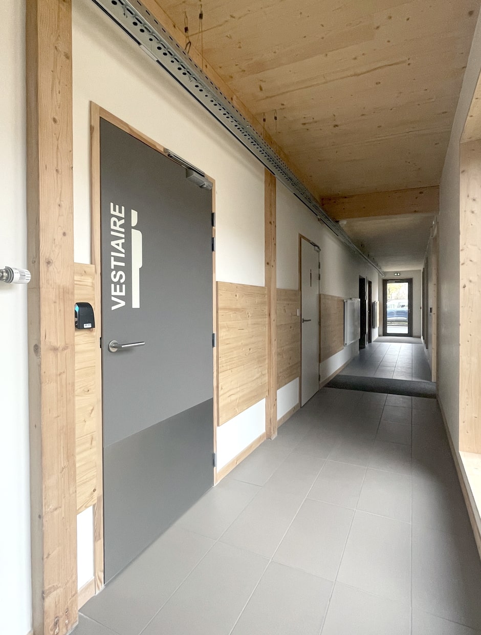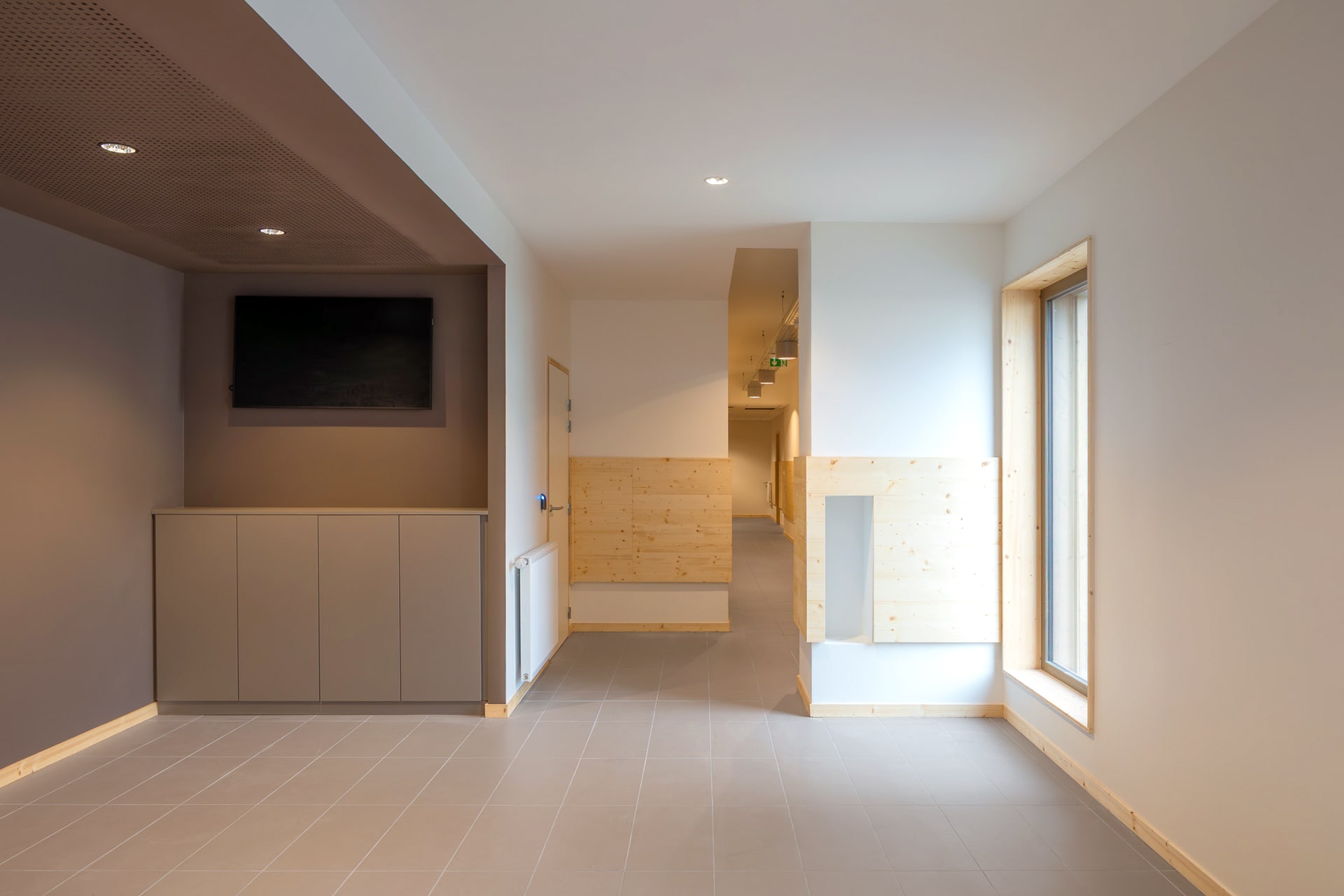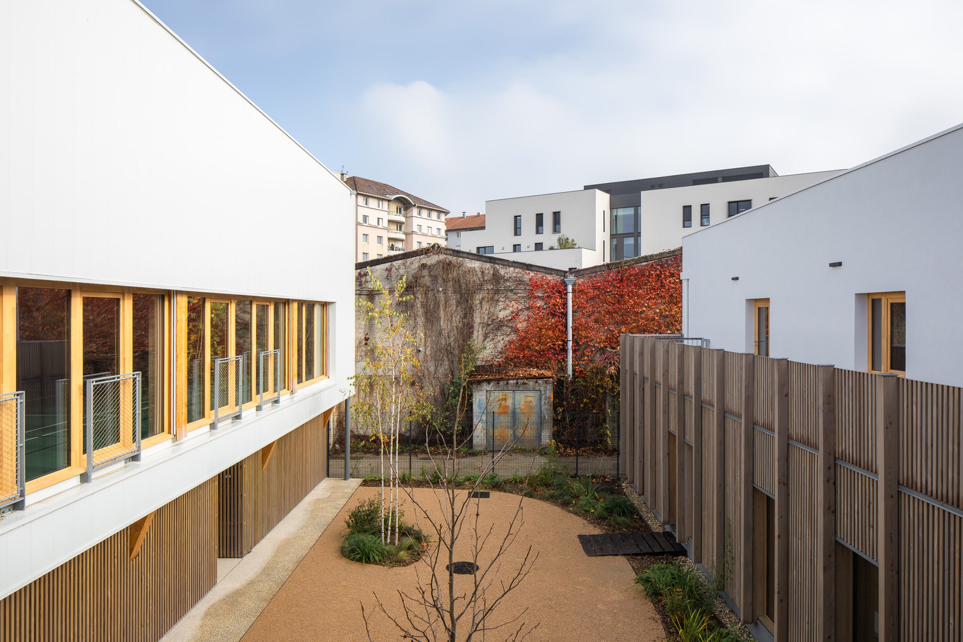 Le gymnase créé est positionné au nord de la parcelle, en R+1, ce qui permet de proposer plus de stationnements, tout en créant un espace extérieur protégé, sans atténuer la luminosité des locaux existants.